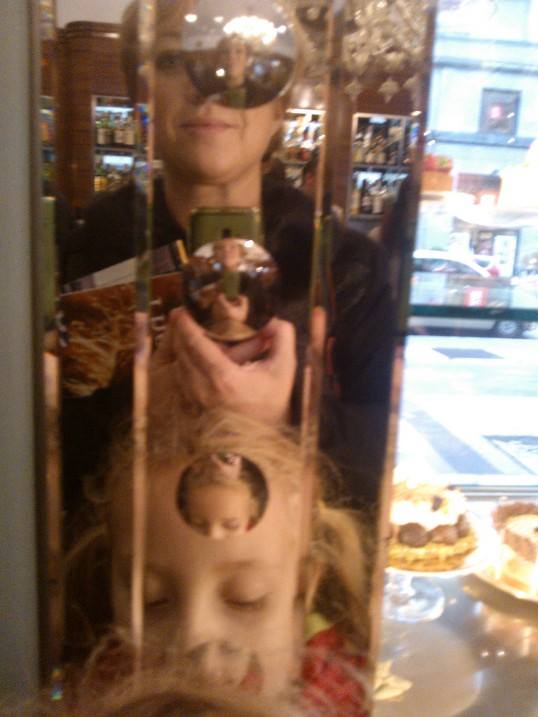 Per non smentirmi, dopo la sbornia di ritratti non resisto all’autoritratto da bimbaminkia dentro lo specchio del Sant Ambroeus. O mangio quei marron glacé in vetrina (tutti) o faccio la scema e diramo in rete. Meglio la scema, dai. Portate pazienza.