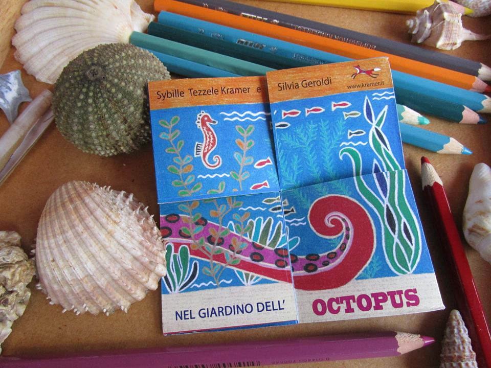 Pesca che ti ripesca, a Milano sono nati degli haiku marini e piano piano, in quel di Bolzano, il giardino dell’Octopus si è fatto quadrato e mutevole come un flexagono, riempito di creature subacquee provenienti da pastelli di montagna.