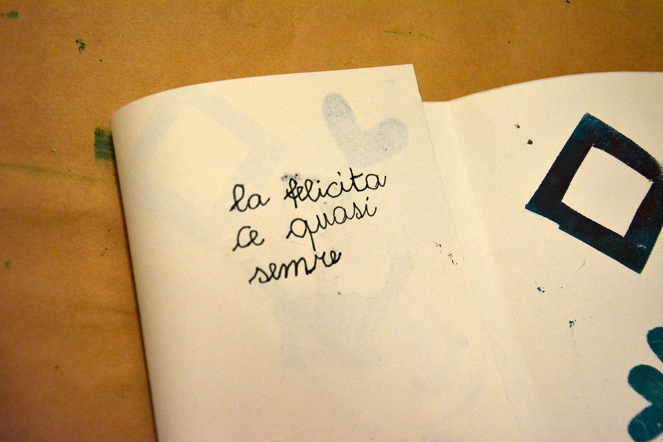 Il percorso ideale de La parola più importante porta all’haiku, ma non in tutti i gruppi si compie fino in fondo. Gli ingredienti e le tecniche che metto a disposizione (sempre diversi), il numero di partecipanti e le relazioni tra loro, l’atmosfera del luogo… questo insieme può far prevalere l’aspetto della manipolazione dei materiali sull’attenzione al testo, alla parola. È un rischio calcolato e non crea problemi, l’obbiettivo del laboratorio non è certo una performance più o meno poetica o artistica.