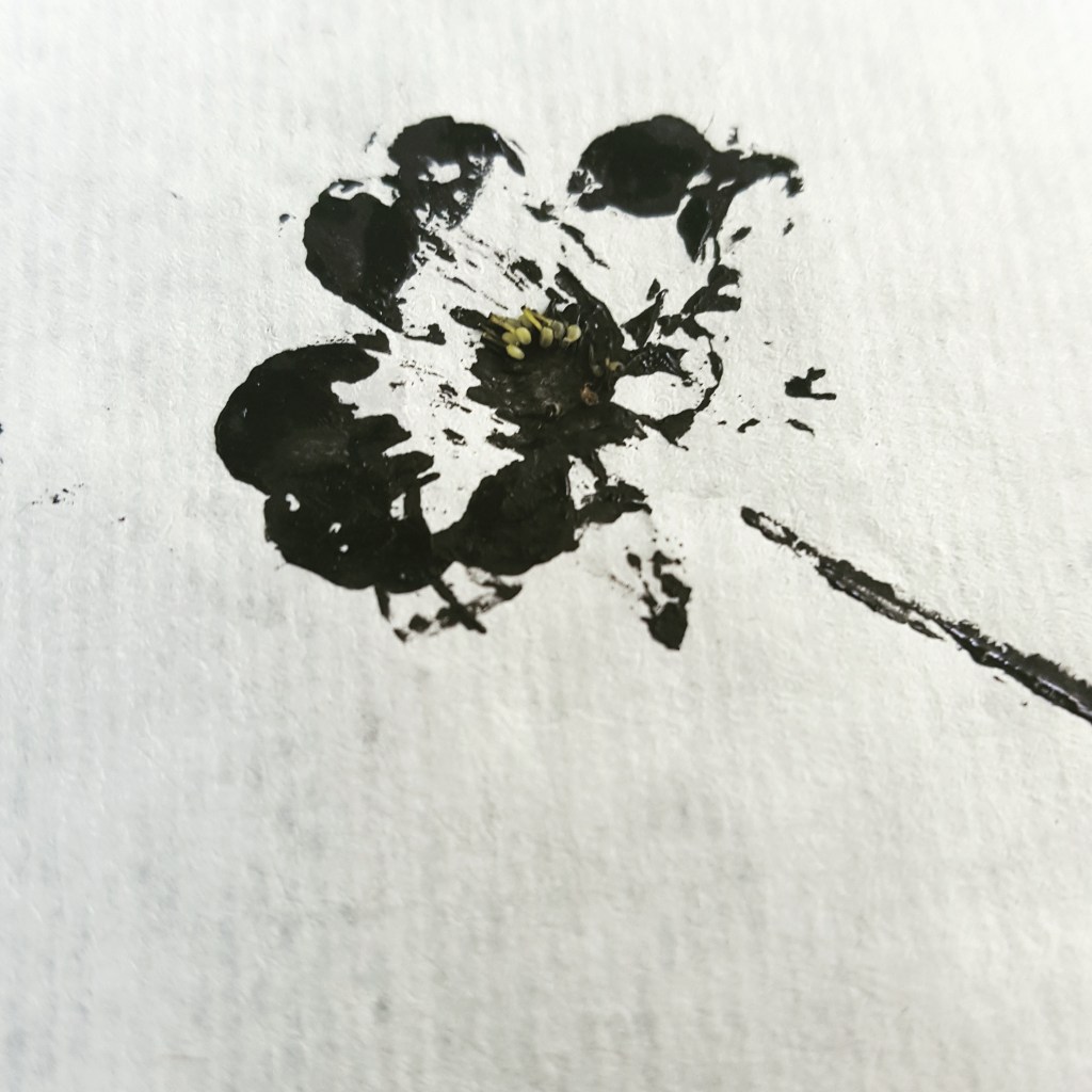 I fiori – o almeno, i pochi fiori che oggi ho trovato visto che avevano appena tagliato il prato – sono ribelli. Sfuggono all’inchiostro, non si lasciano catturare. Ad usare la forza, si rompono. Ad esser delicati, ti prendono in giro. Troppo inchiostro e si ottengono orrendi bozzetti neri, più simili a scarafaggi che a boccioli. Poco inchiostro e puff, non sono mai esistiti, idiota io che credo di vedere una margherita acciaccata tra le mie dita. Non resta che adularli, i fiori, accontentandosi di provare ad annerire i contorni, il profilo, e accarezzare con cura il foglio pulito che li ricopre come una copertina di bisso nella delicata operazione della stampa. La carta di riso farà il resto, deciderà se accogliere l’inchiostro, quanto, come.