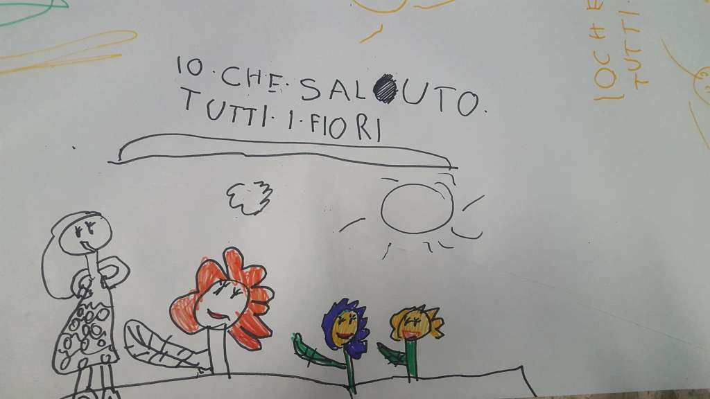 Come da tradizione, qui sperimento sempre un po’. Quest’anno non abbiamo composto insieme. Complice il nuovo libro, ho voluto mettere tra parentesi lo schema sillabico, che richiede sempre un mio intervento con i bambini più piccoli, e puntare sulla suggestione che la sola lettura dell’albo può dare.