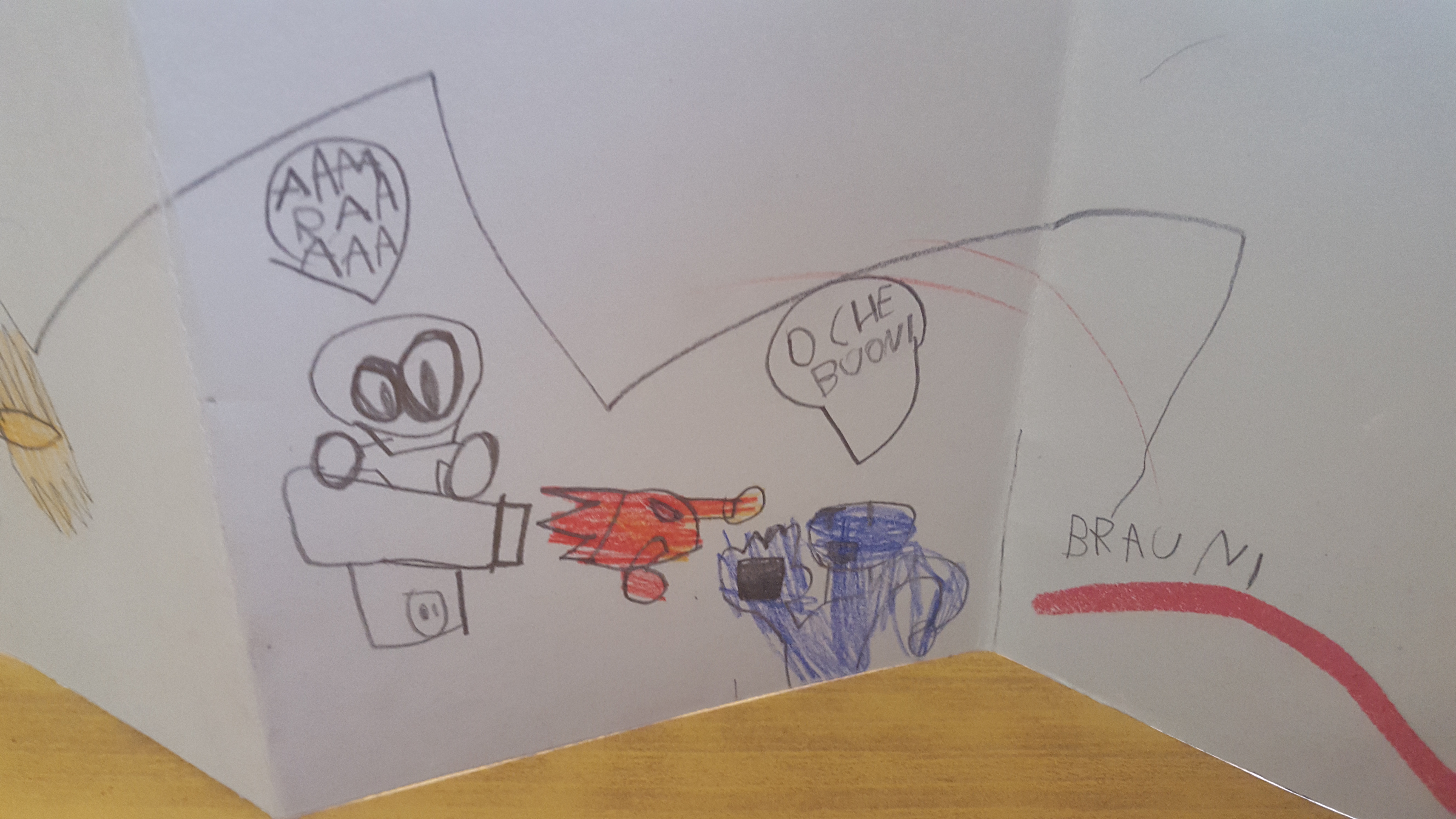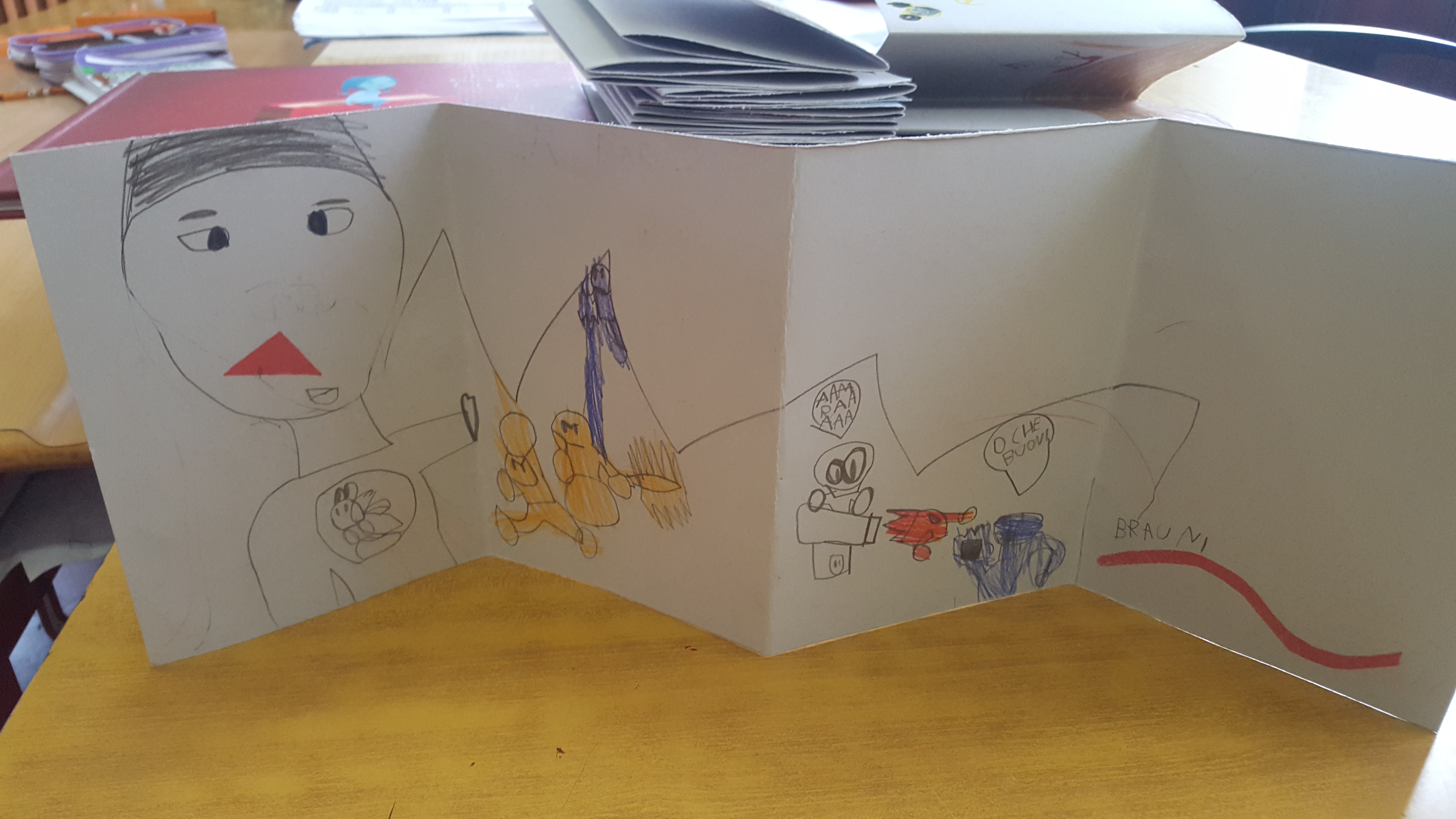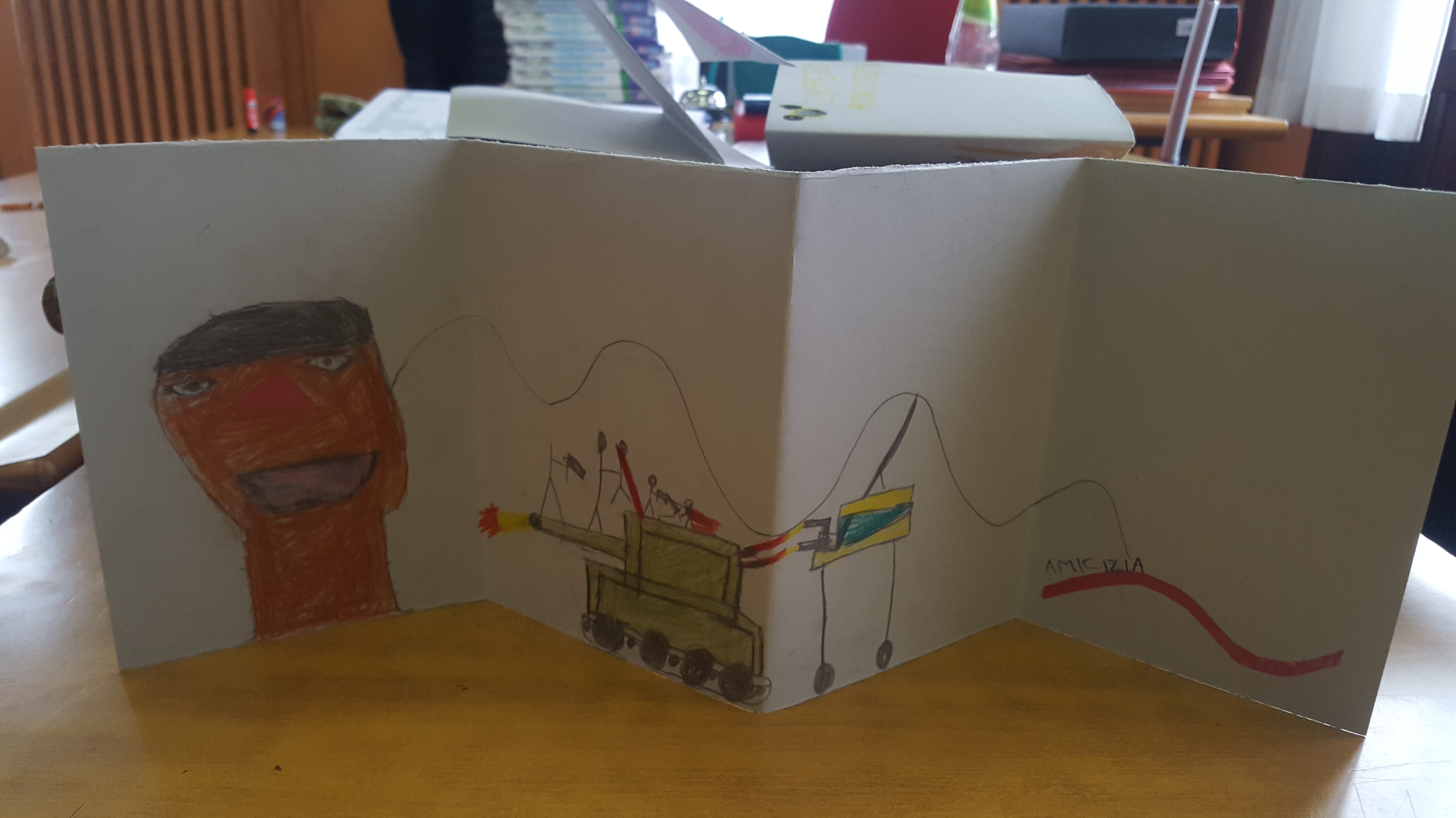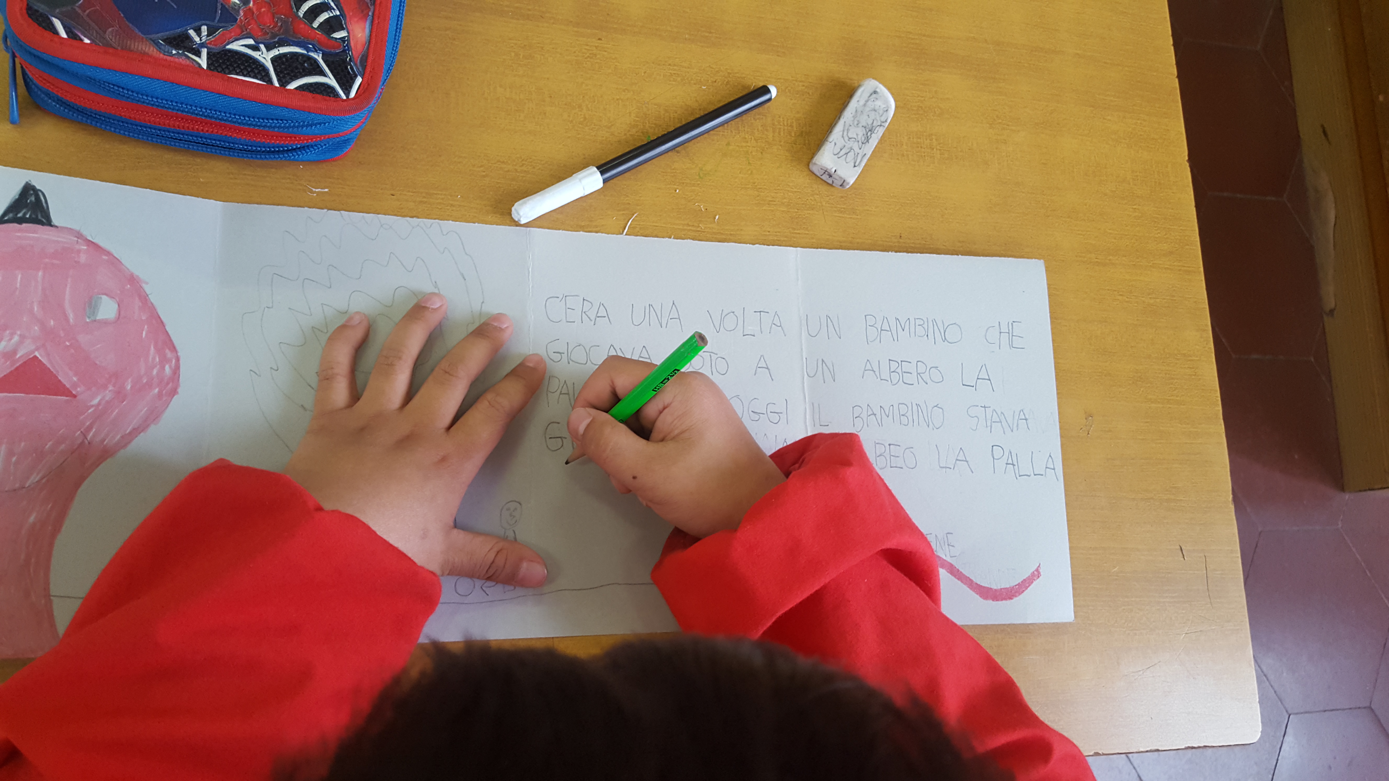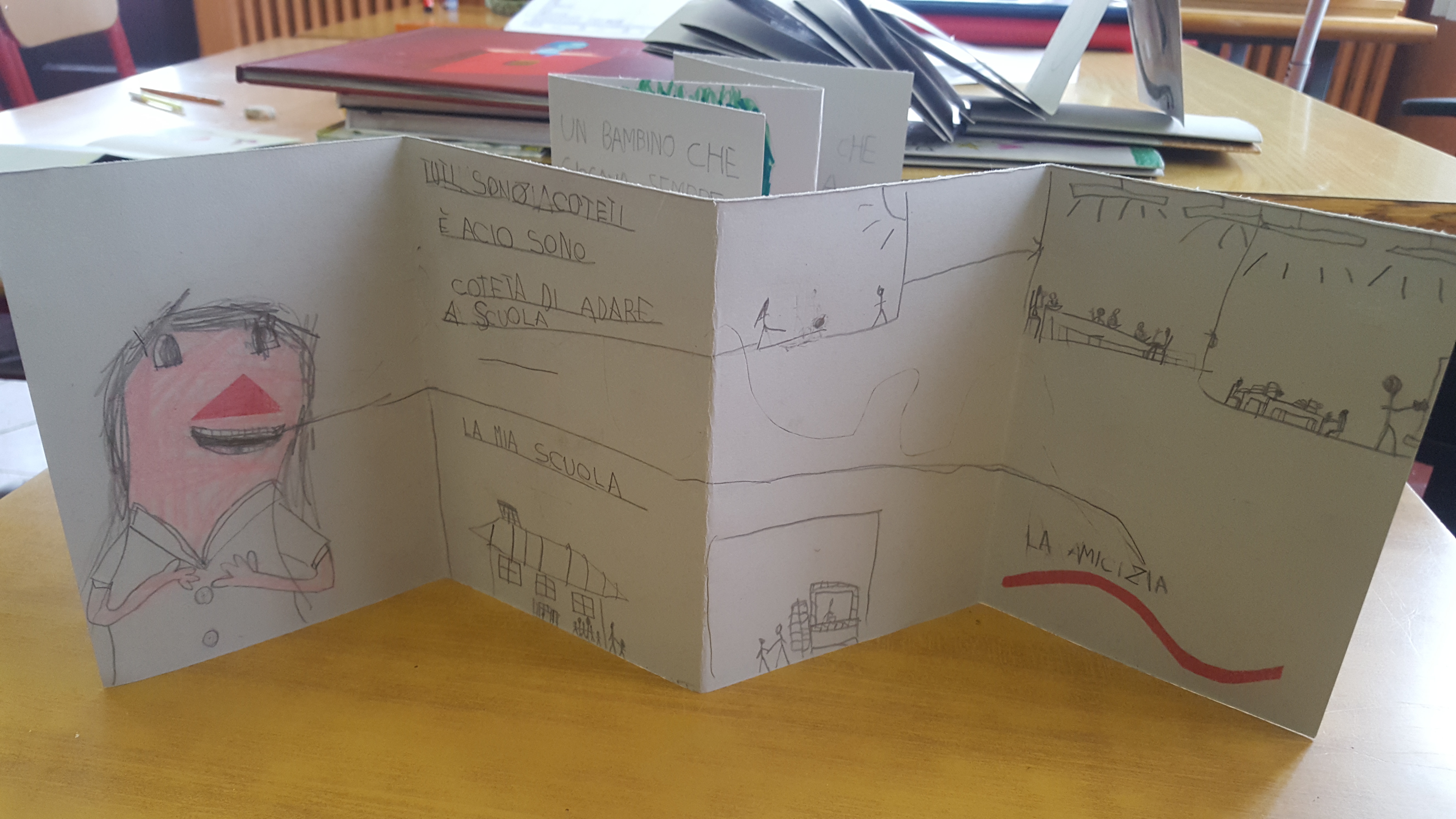 Perseguire il ben-essere (mi piace stare bene). Saperlo dire e scrivere, saggiamente, forte e chiaro. Riconoscere il lavoro dell’educatore (la parola più importante è Maestro). La scuola come luogo di gioia. La lettura come atto naturale, un piacere. Il disegno come motore della storia (due amici fanno la guerra per mangiare un biscotto). La parola per narrare o da sperimentare come elemento grafico: un’onda, una spirale, uno specchio.