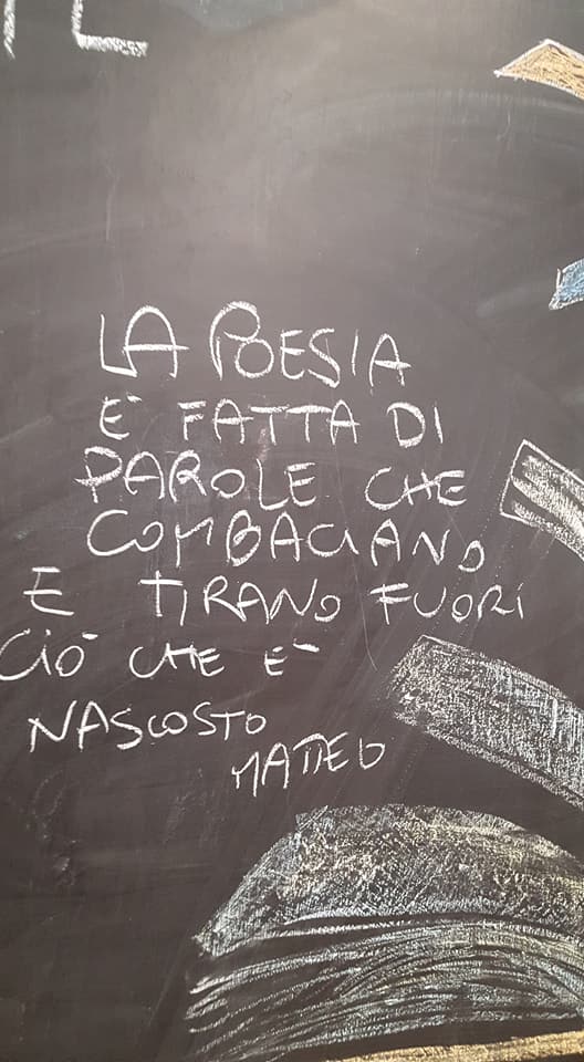 “Il 21 e il 22 marzo 2019 davanti alla scuola materna ed elemetare Falcone e Borsellino, in strada e in biblioteca, potrà capitarvi di imbattervi in una tempesta di poesie. Per il quarto anno consecutivo festeggiamo la giornata mondiale della poesia, e lo facciamo nel modo che più ci appartiene, attraverso un flashmob poetico, allestendo una installazione di “Esseri umani” il 21 marzo, prima dell’ingresso in aula, festeggiando con i bambini e le bambine delle classi quarte grazie all’incontro con Silvia Geroldi in orario scolastico e con tutti i bambini che vorranno partecipare il pomeriggio, in biblioteca, per una matta merenda poetica, e il 22 pomeriggio con filastrocche rime e fantasticherie di e con Massimiliano Maiucchi. La poesia è un atto di pace, dice Pablo Neruda.