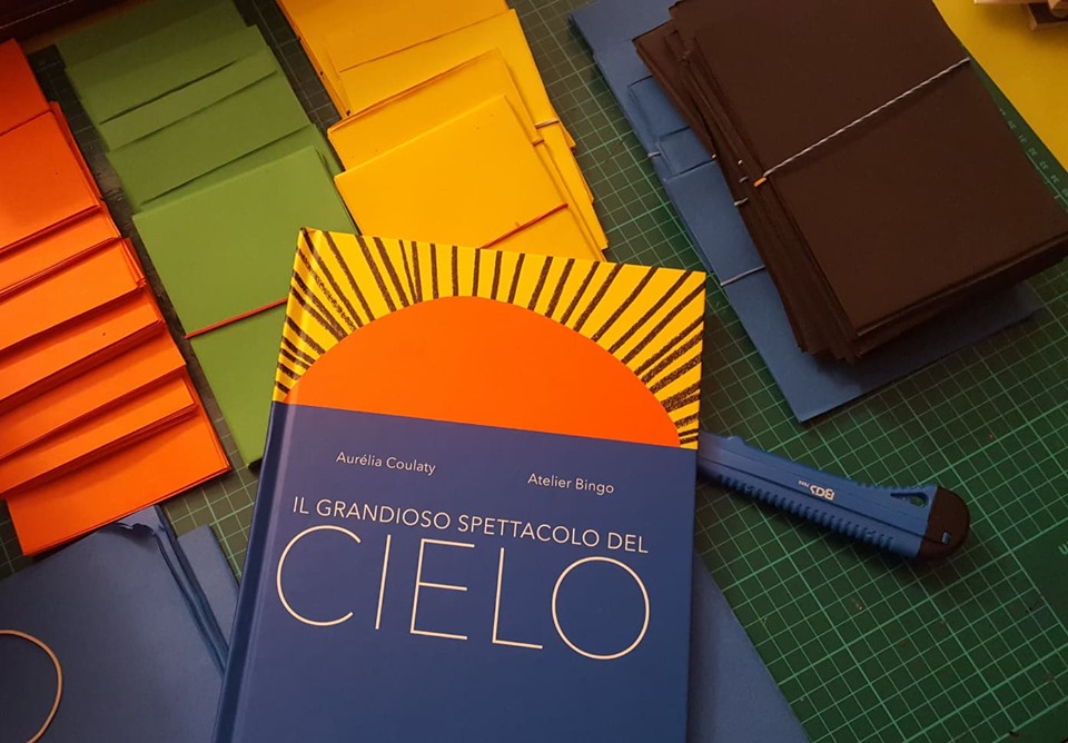 Perciò, proprio mentre sto infilando nello zaino Il grandioso spettacolo del cielo, ed. Terre di Mezzo, insieme alla mia voglia di giocare con similitudini e metafore, il duo francese Atelier Bingo sta per arrivare in città, mostrare il suo coloratissimo lavoro e parlare del vivace e poetico albo illustrato scritto da Aurélia Coulaty.