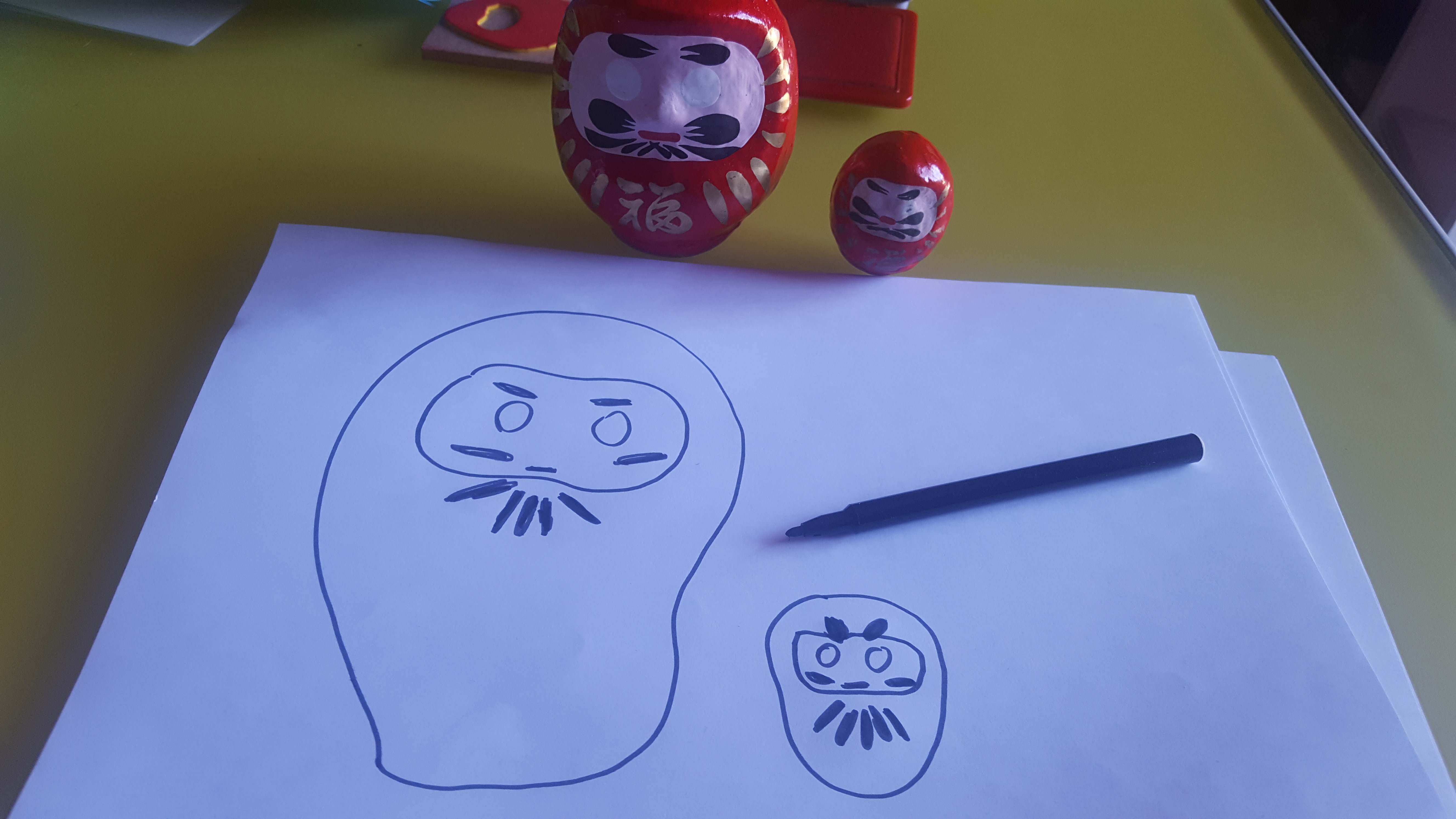 Sono un oggetto votivo giapponese. Le persone mi affidano i loro desideri, disegnando uno dei miei occhi. Quando il desiderio si è avverato, disegnano anche l’altro occhio, pronte per un nuovo desiderio. Se vuoi approfondire qualche informazione su di me, leggi qui.